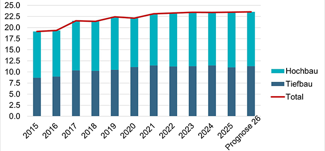 Bautätigkeit in Mia. CHF (Gesamtjahr)