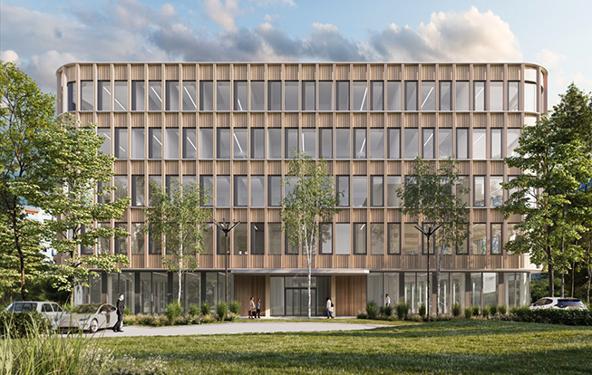 Das im Herbst dieses Jahres fertiggestellte WKO-Bürogebäude von Viereck Architekten in Graz ist mit einer verbauten Holzmenge von 517 Tonnen eines der Leuchtturmprojekte des österreichischen CO2-Bonus-Programms. Dieses fördert mehrgeschossige Wohnbauten sowie Gebäude für öffentliche Zwecke und öffentliche Infrastruktur in Holzbauweise. Die Begutachtung und Auswahl der geförderten Holzbauprojekte erfolgt über eine unabhängige Expertenjury.