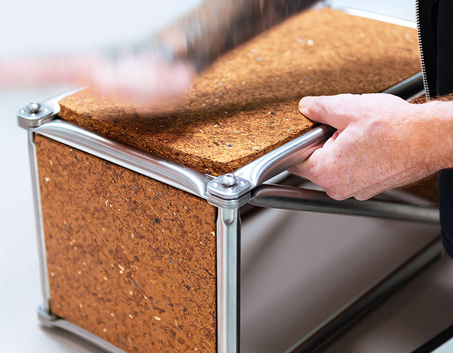 Das Fraunhofer-Institut für Angewandte Polymerforschung IAP hat zusammen mit der Hochschule für nachhaltige Entwicklung Eberswalde und Industriepartnern einen Prozess entwickelt, mit dem sich ausgediente Holzspanwerkstoffe zu 100% wiederverwerten lassen. Hier werden so gewonnene Recyclingspanplatten zu einem Demonstrationsmöbel montiert.
