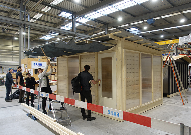 Das neue Must-have für Schweizer Schrebis? Produktion eines Prototyps des Gartenhauses ‹Mikado› bei Erne Holzbau AG.