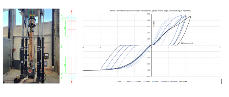 La détermination de la ductilité d’un assemblage a lieu expérimentalement selon la norme SN EN 12512. La ductilité requise d’un assemblage doit être garantie sous une charge cyclique alternée et des déplacements limites suffisamment importants doivent être atteints.