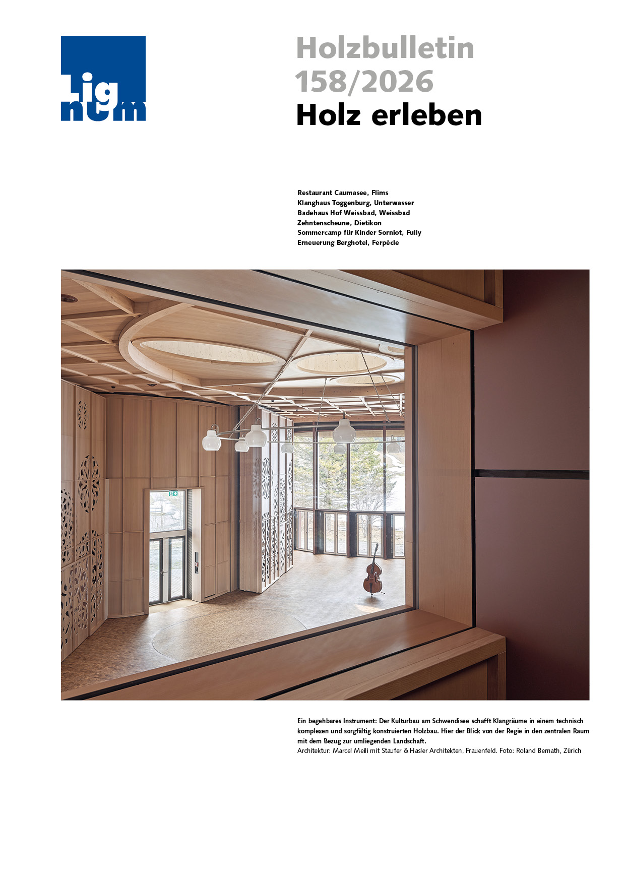 Die Dokumentation guter Bauten in Holz der Lignum viermal pro Jahr ausserhalb der Schweiz im Briefkasten. Lignum-Mitglieder erhalten das Lignum-Holzbulletin automatisch und kostenlos.